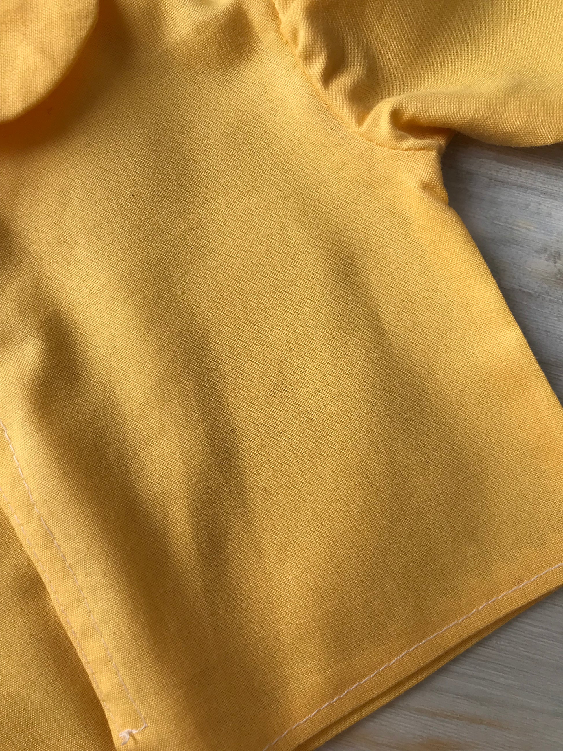 The little yellow blouse has a Peter Pan collar and a velcro opening down the front.