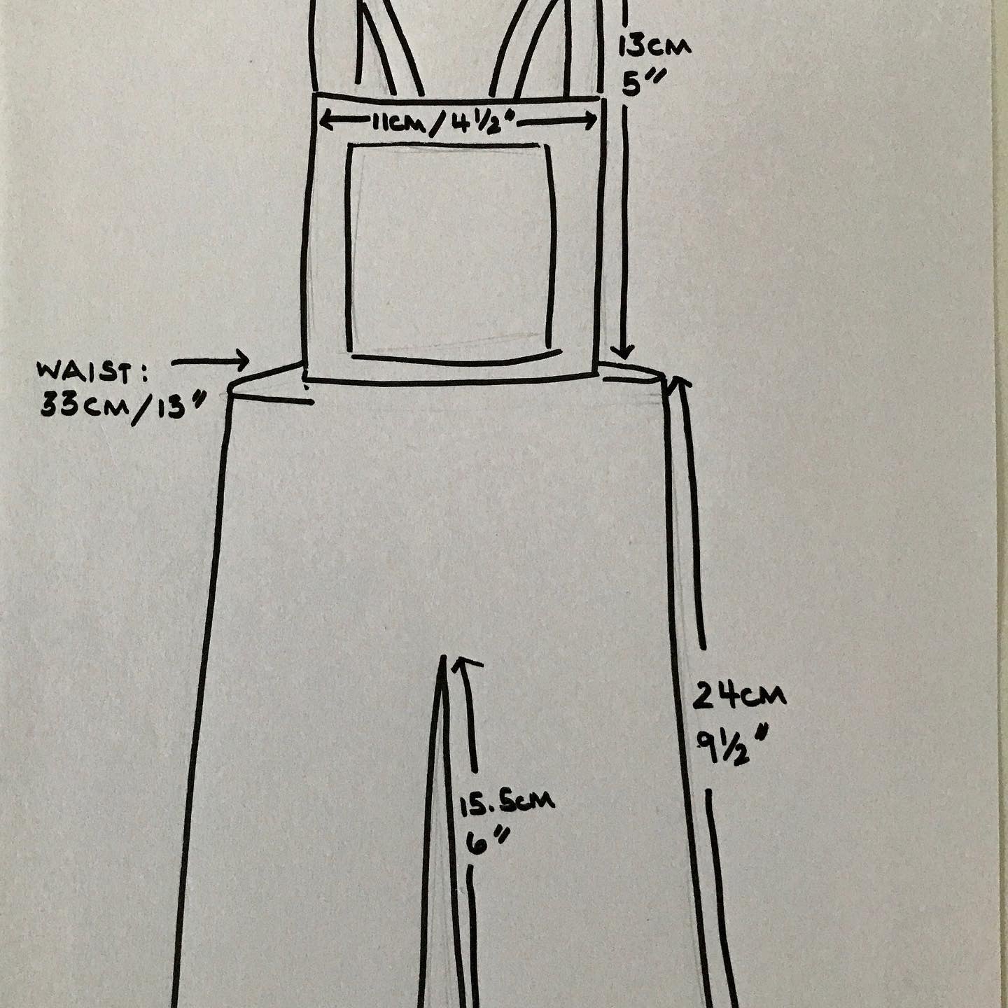 A beautiful set of dolls dungarees and blouse, made to fit The Jemima Company dolls but which may well fit your own doll or toy. Have a look at our photographs to see the measurements.