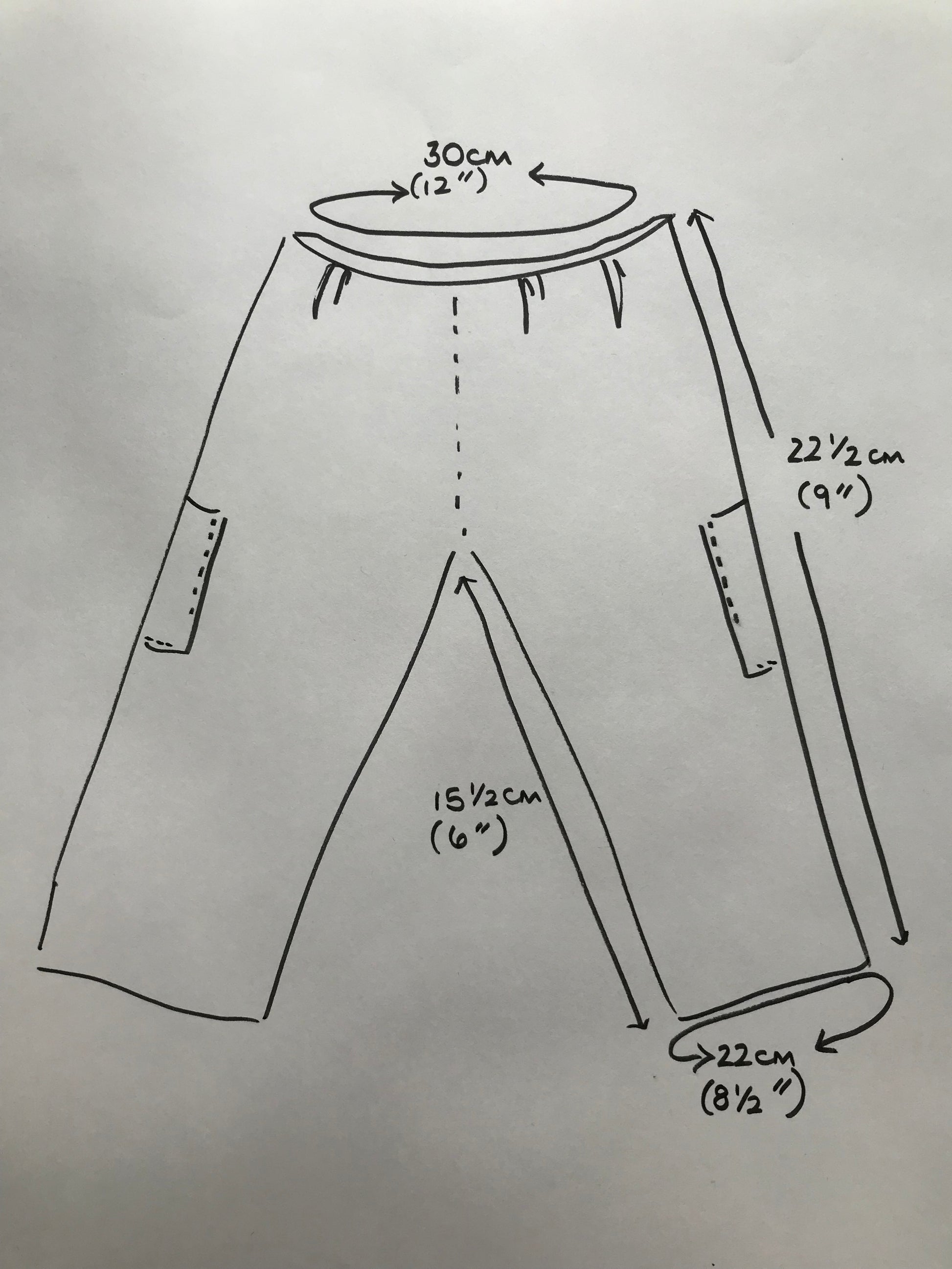 Every well-dressed rag doll needs a set of pyjamas! These pyjamas fit The Jemima Company dolls but may well fit your own doll. Check the photos to see the sizing of the pyjama top and bottoms.