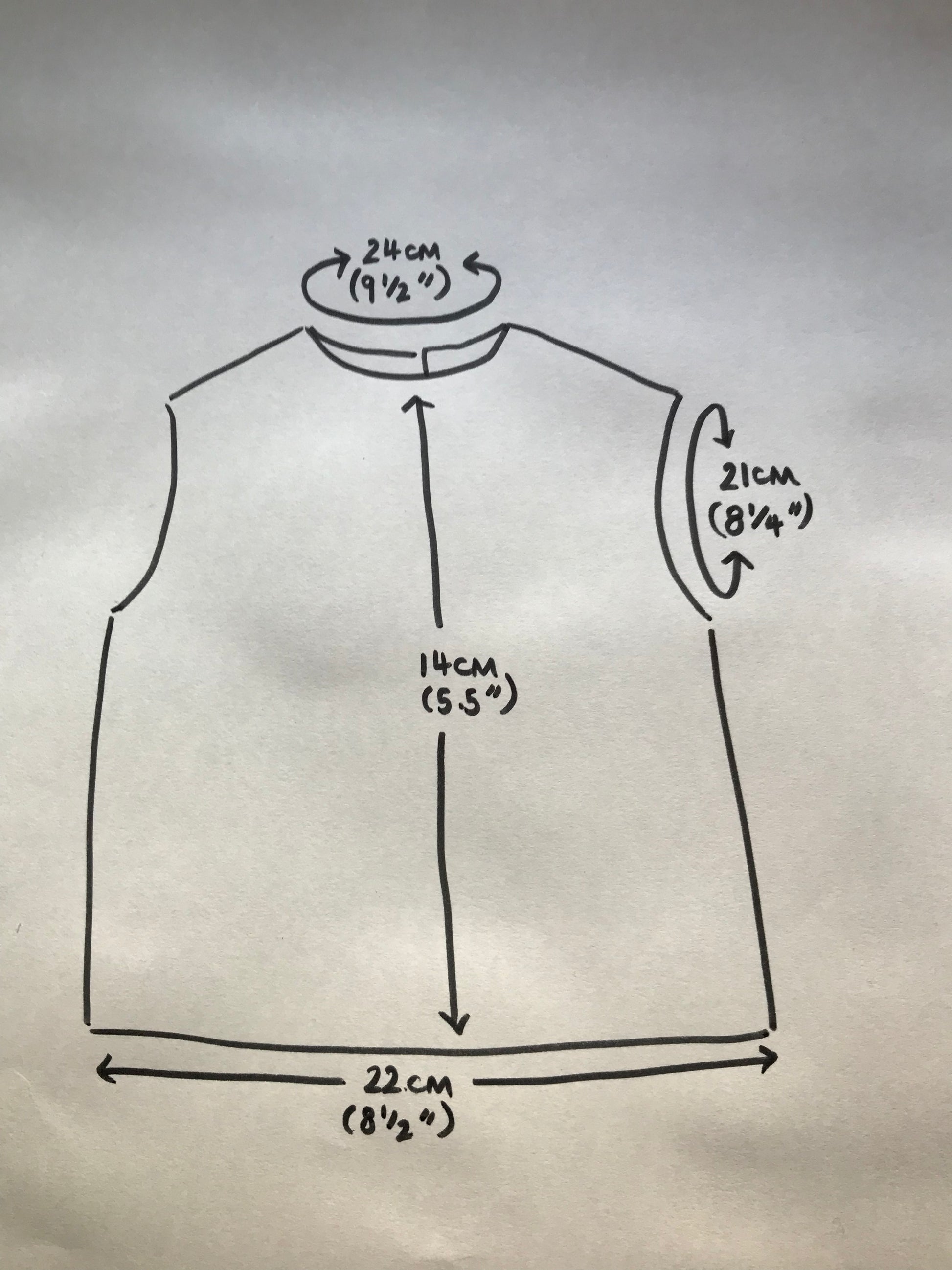 A beautiful sleeveless pullover, made to fit The Jemima Company dolls but which may well fit your own doll or toy. Have a look at our photographs to see the measurements.