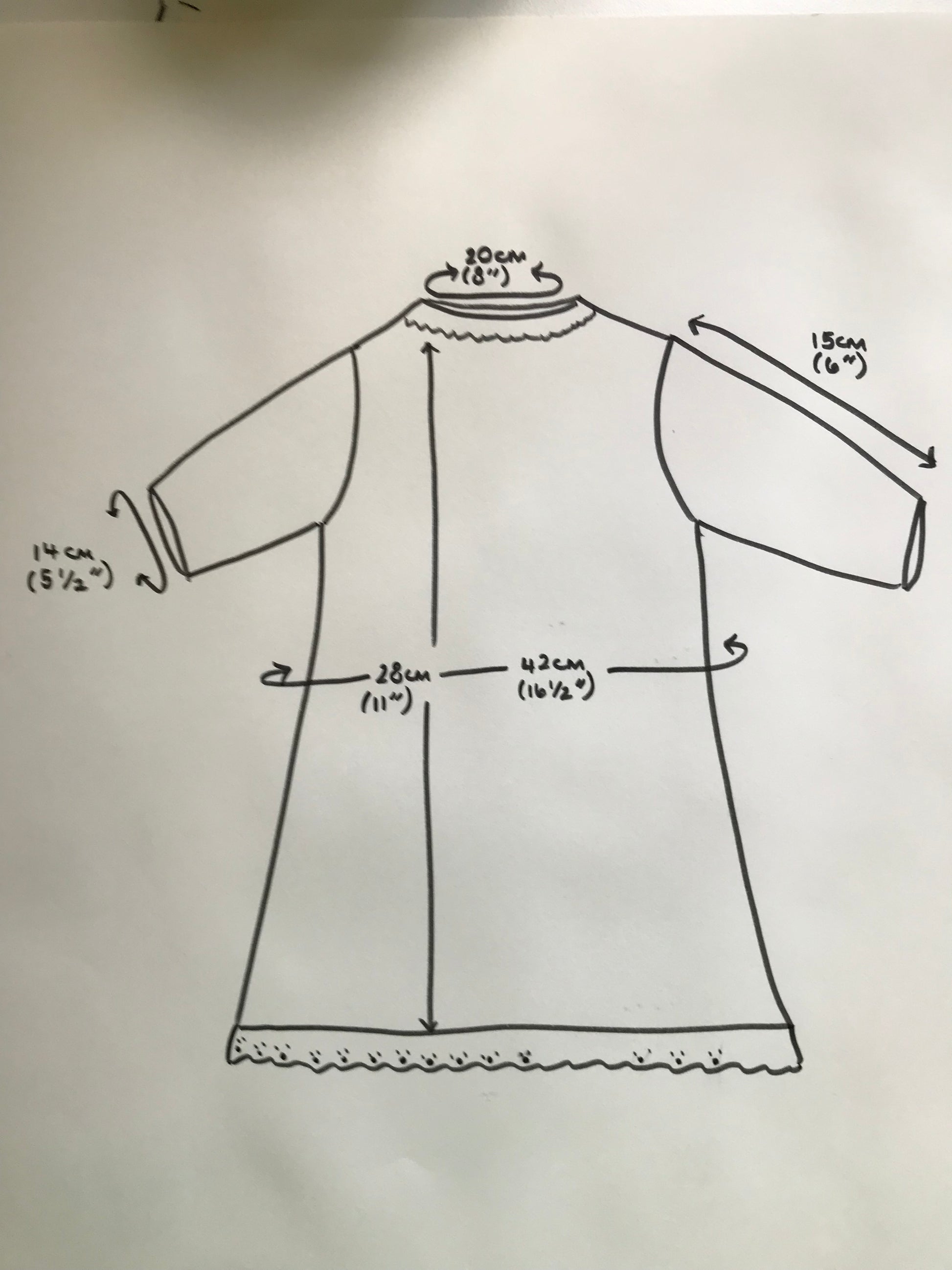 A beautiful dolls dress, designed to fit The Jemima Company dolls but may well fit your own doll or toy (check through our photographs to see the measurements of the dress).