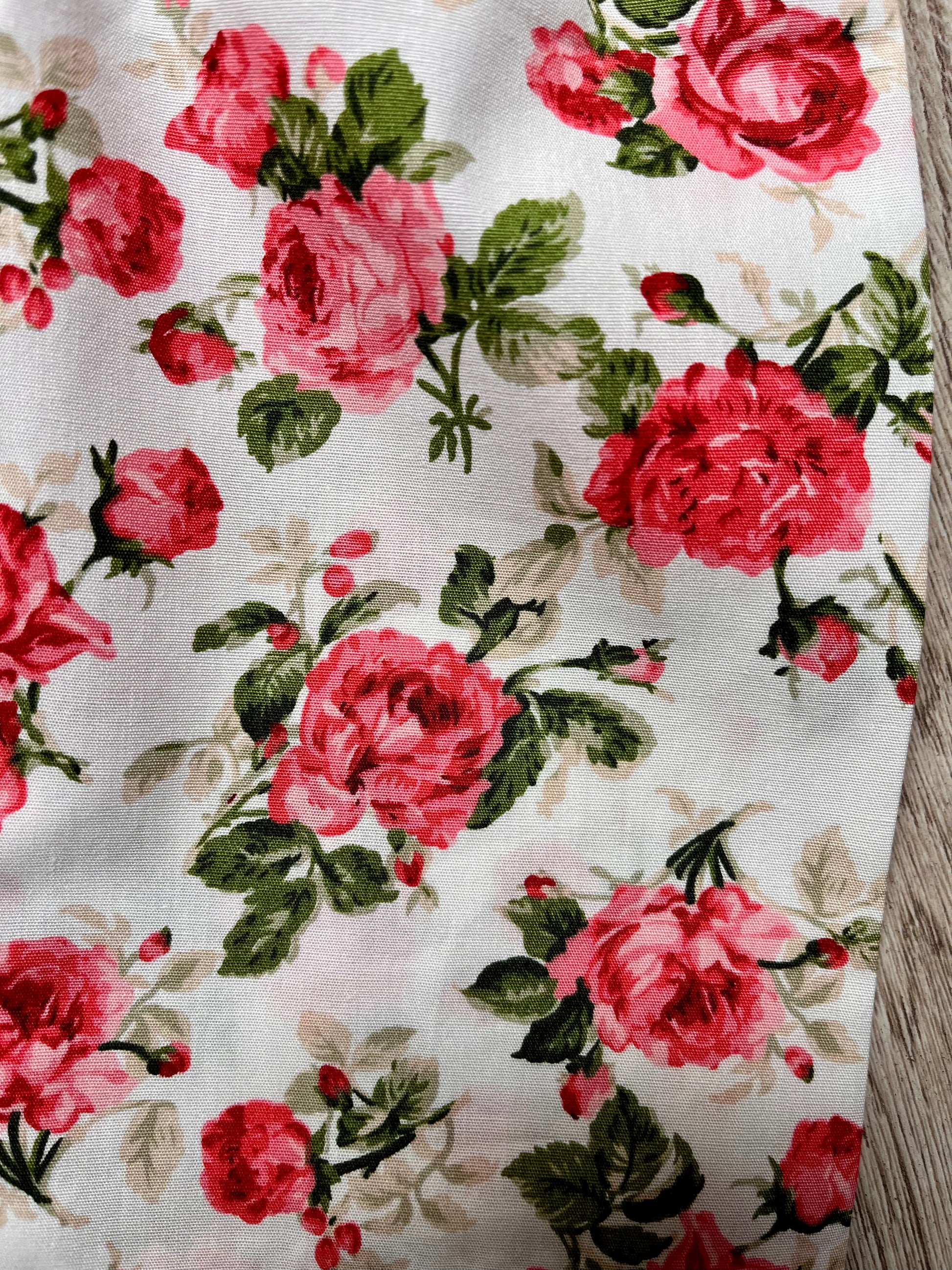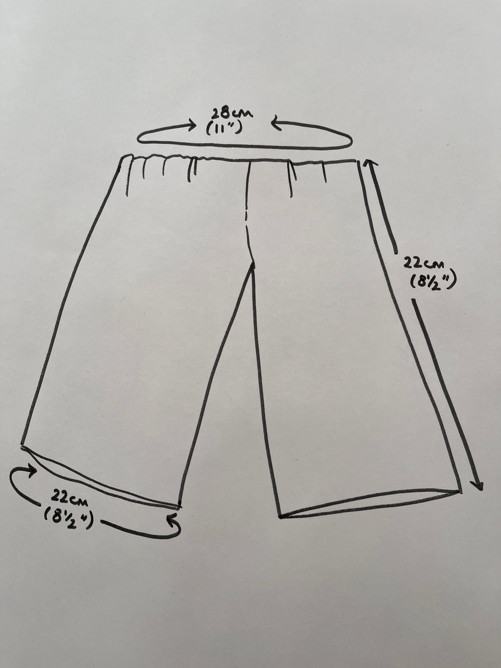Every well-dressed rag doll needs a set of pyjamas! Made from a very pretty Rose & Hubble rose-print cotton, these pyjamas have a velcro opening down the front and a Broderie Anglaise collar. The trousers have an elasticated waist.