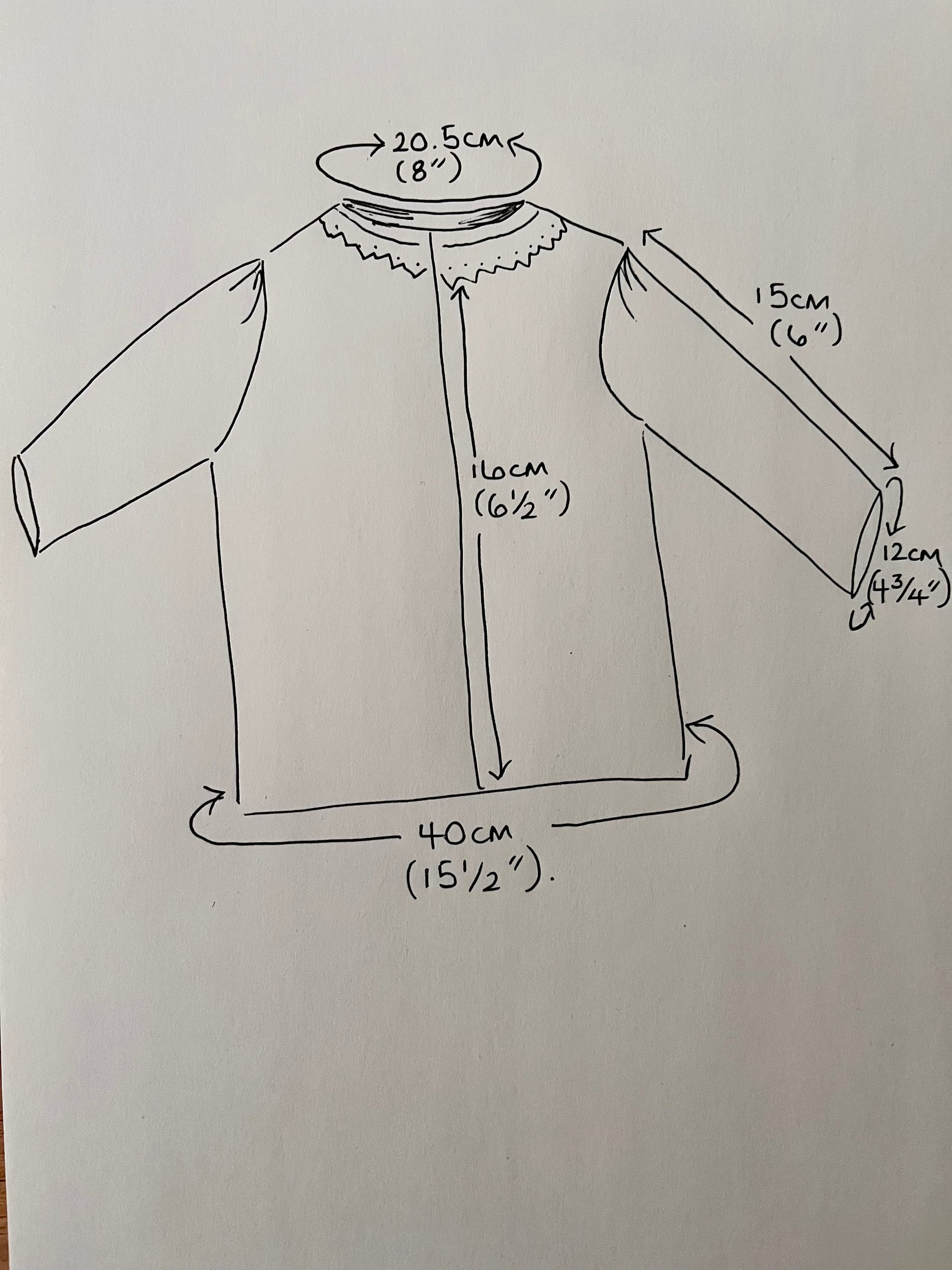 A delightful skirt and blouse set which is designed to fit The Jemima Company dolls but which may well fit your own doll or toy. Have a look at the photos to see all measurements of the garments.