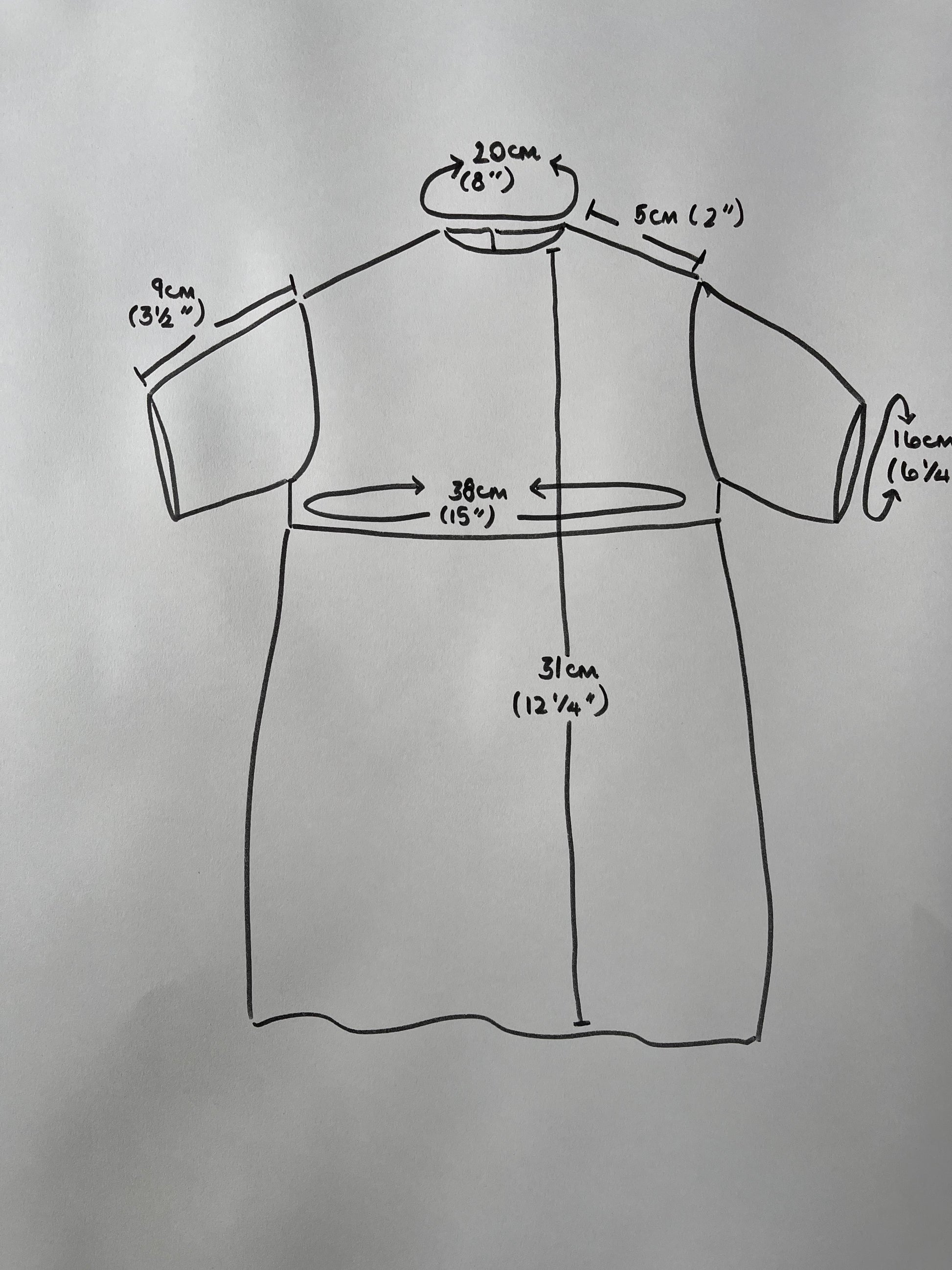 A beautiful dress which has been designed to fit The Jemima Company dolls but may well fit your own doll or toy (check through our photographs to see the measurements of the dress).